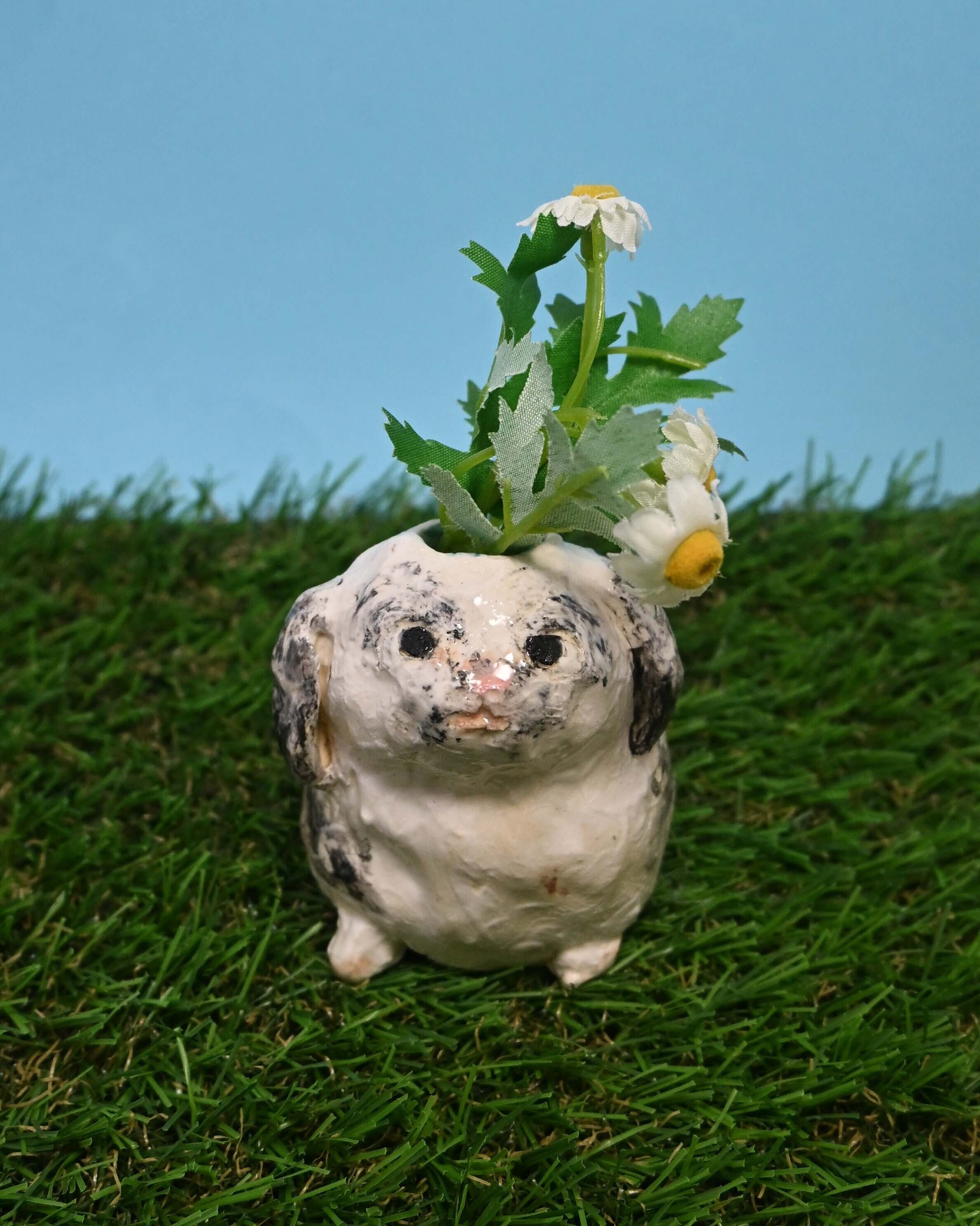 うさぎの可愛らしさ、愛情を表現した手のひらにのるサイズの小さな花器、「ひとんちのうさぎ一輪挿し」です。